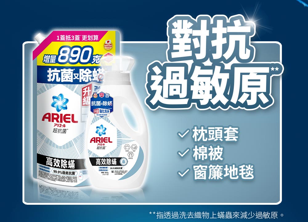 【ARIEL】超濃縮抗菌洗衣精800G瓶裝-高效除螨