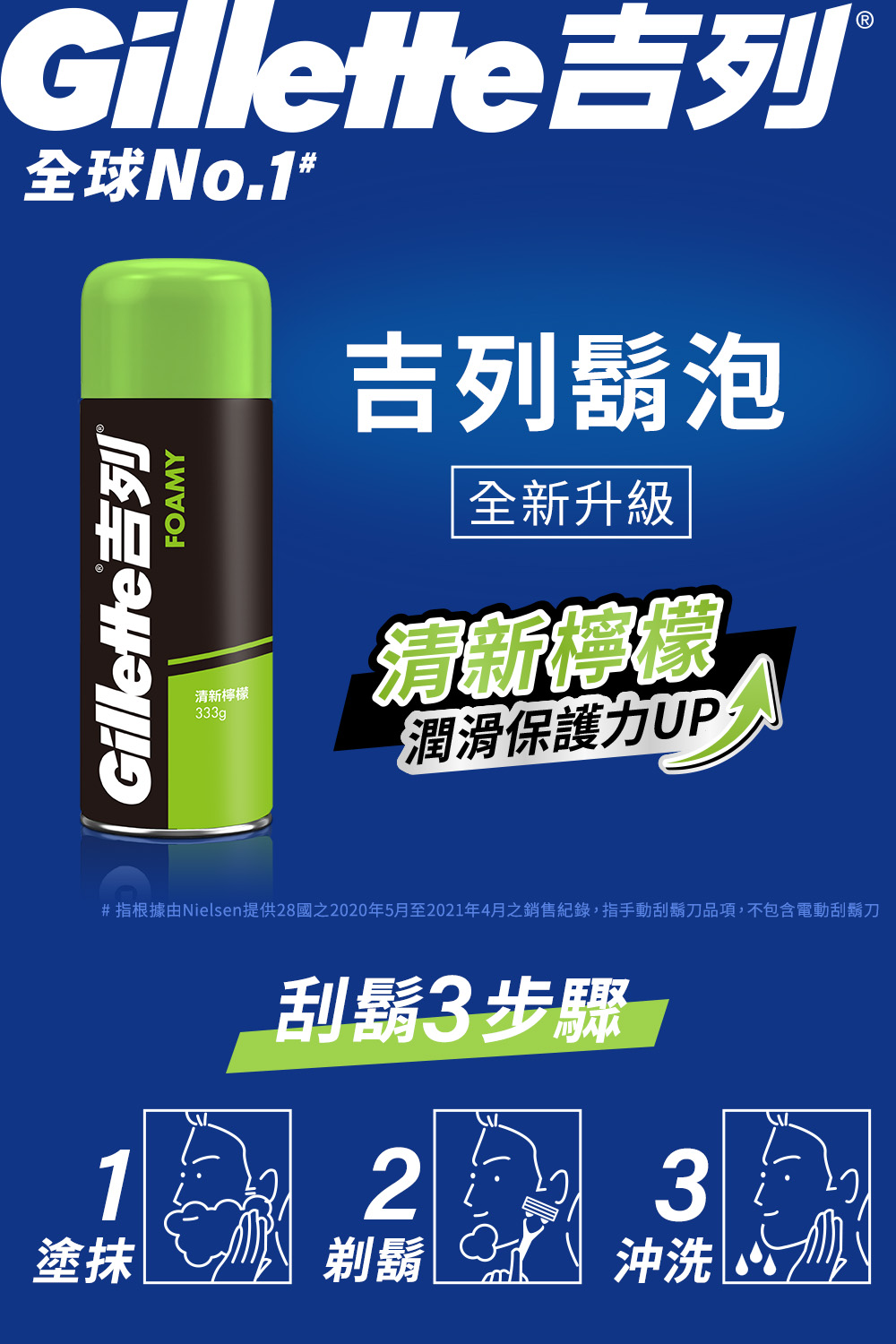 【吉列Gillette】經典柔順刮鬍泡/剃鬚膏(清新檸檬味) 333G