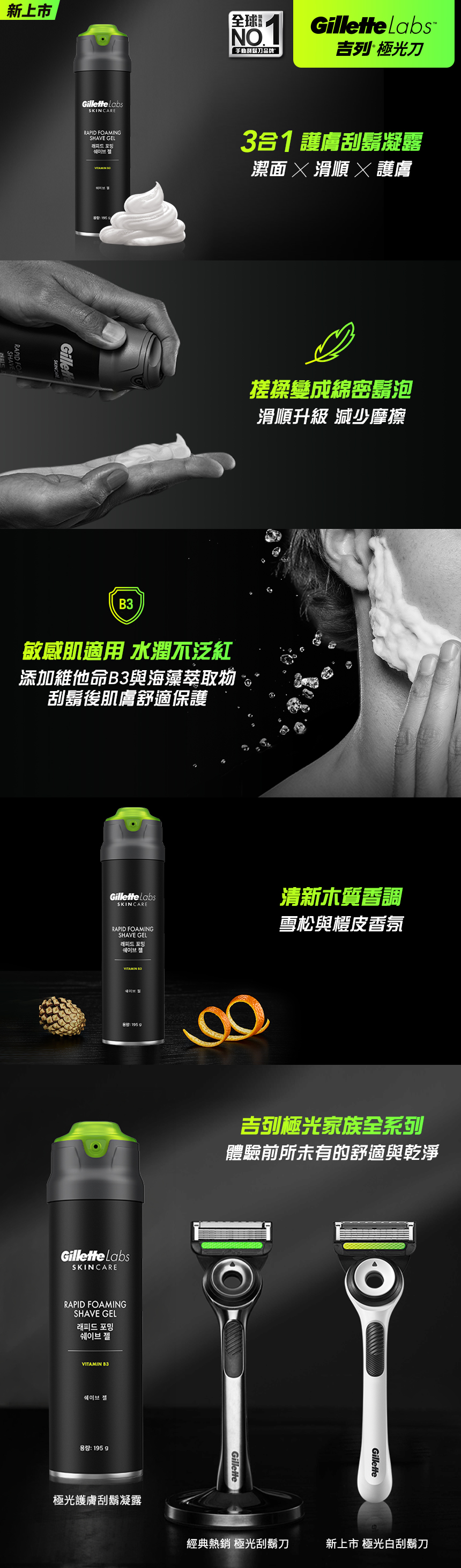 【吉列Gillette】 Labs 極光系列刮鬍凝露195G